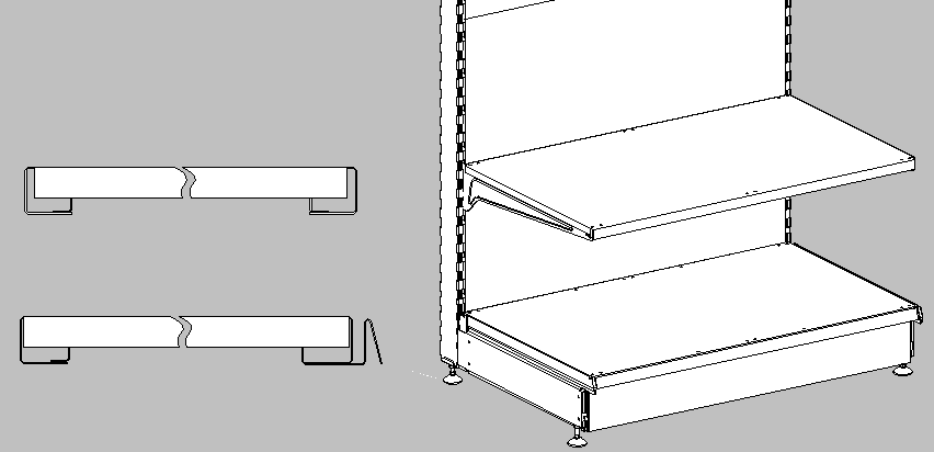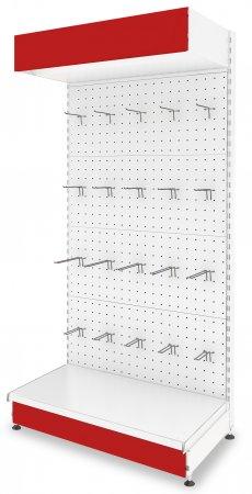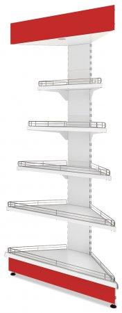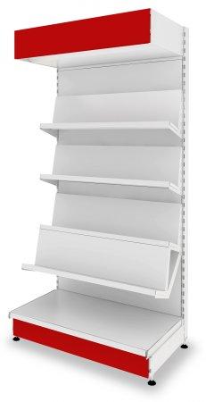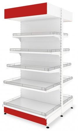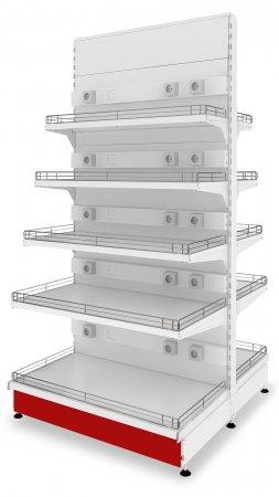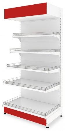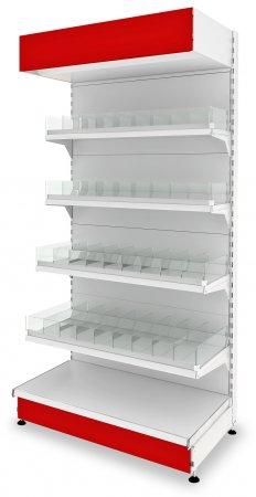 Стеллажи могут быть дополнены верхним фризом (с подсветкой), ограничителями полок и пластиковыми ценникодержателями.
