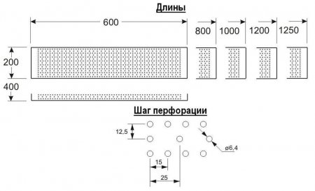 Шаг перфорации задних панелей равен 25 или 50 мм.