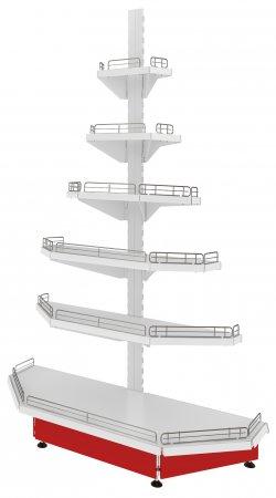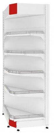 Торговые стеллажи металлические сборныеТорговые стеллажи серии «Купец» предназначены для оборудования торговых залов магазинов самообслуживания различных форматов и специализаций. В модельный ряд стеллажей входят пристенные прямые и угловые, островные и торцевые сборные секции высотой от 1200 до 2400 мм с шагом 200 мм, длиной от 600 до 1250 мм, и шириной от 300 до 600 мм. Технические характеристикиВ ассортименте серии «Купец» есть все необходимые сборные элементы для комплектации стеллажей: