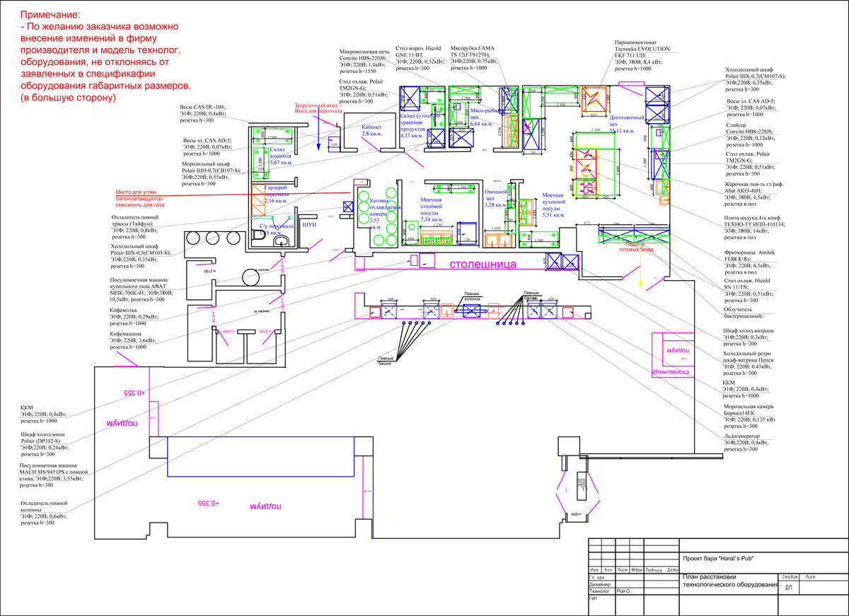 Основу теплового цеха составили: надежный пароконвектомат UNOX XV 393, функциональная индукционная плита ITERMA ПКИ-4КВ/3,5/840/850/360 и востребованная в пабе фритюрница LILOMA FLT 8+8.