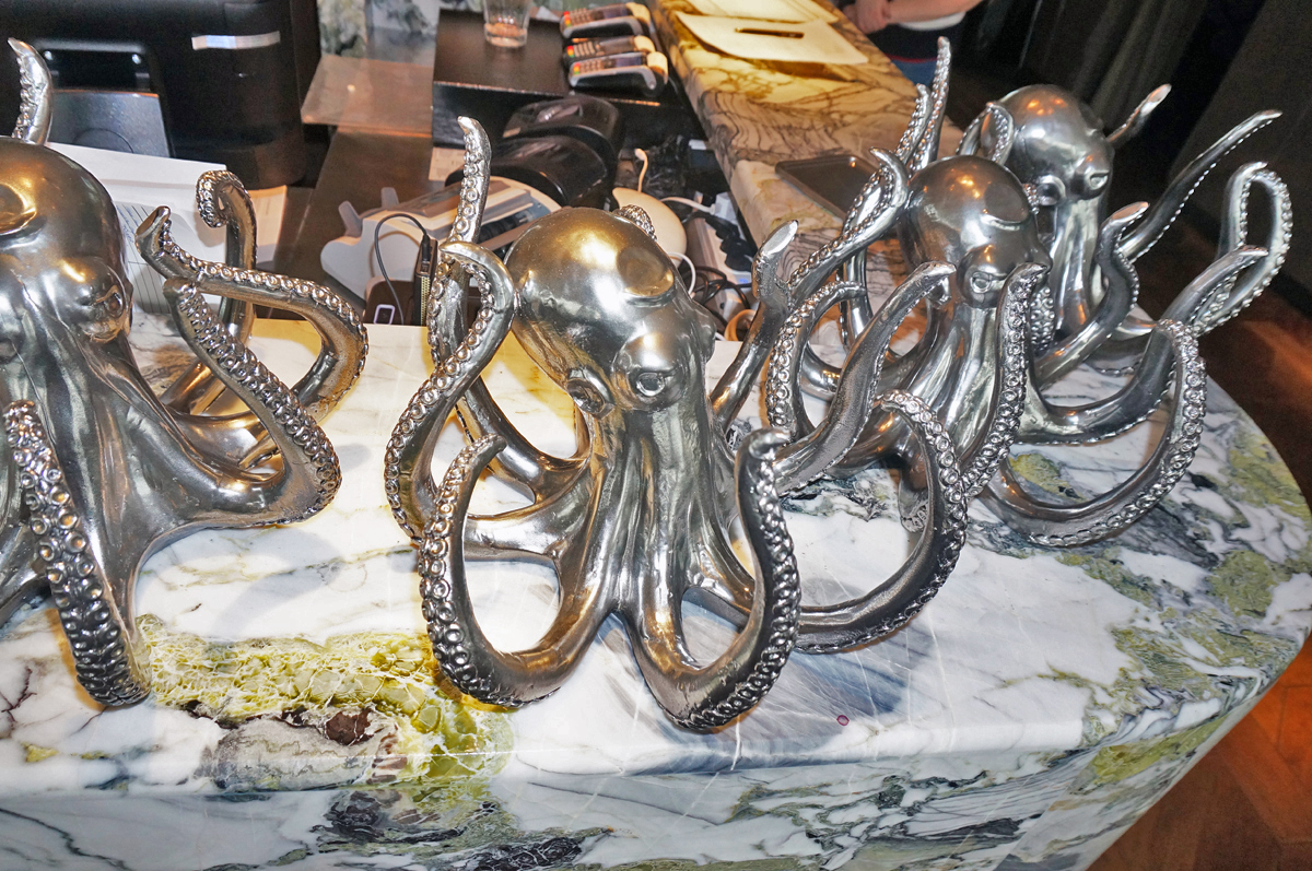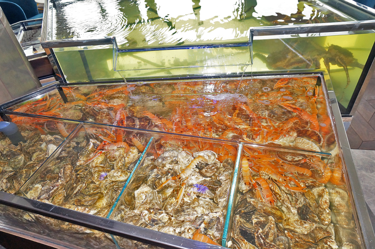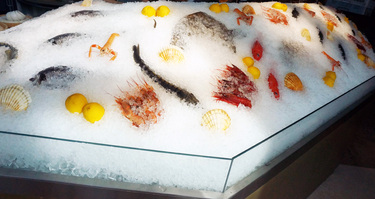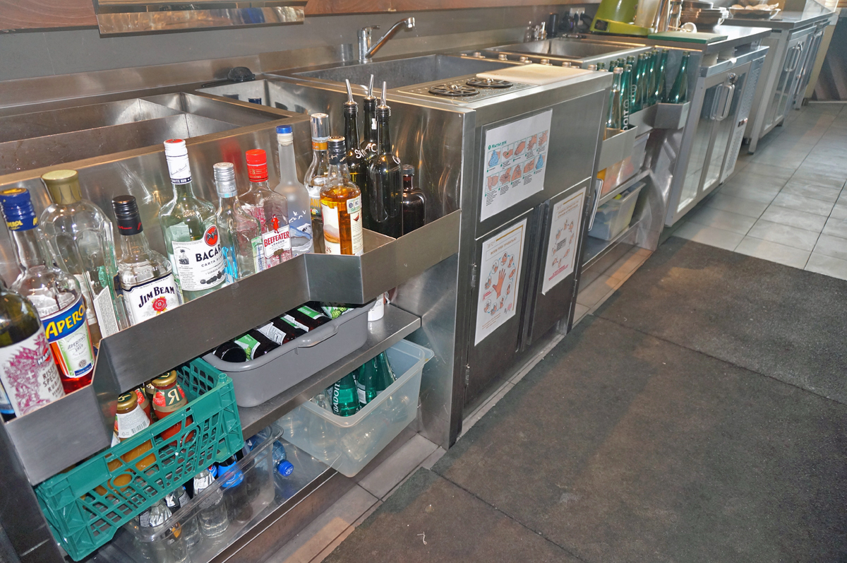 Сердце ресторана - Row bar c ледником, каменной столешницей и дизайнерской витриной для выкладки рыбы, где гости могут выбрать морепродукты на свой вкус. Необходимый объем и качество льда обеспечивают льдогенераторы Hoshizaki для гранулированного и кубкового льда. Дополнительно в зоне кухни установлено несколько льдогенераторов Scotsman, для снабжения льдом открытой витрины и нужд бара. Для приготовления суши прекрасно справляется со своей задачей рисоварка Indokor.