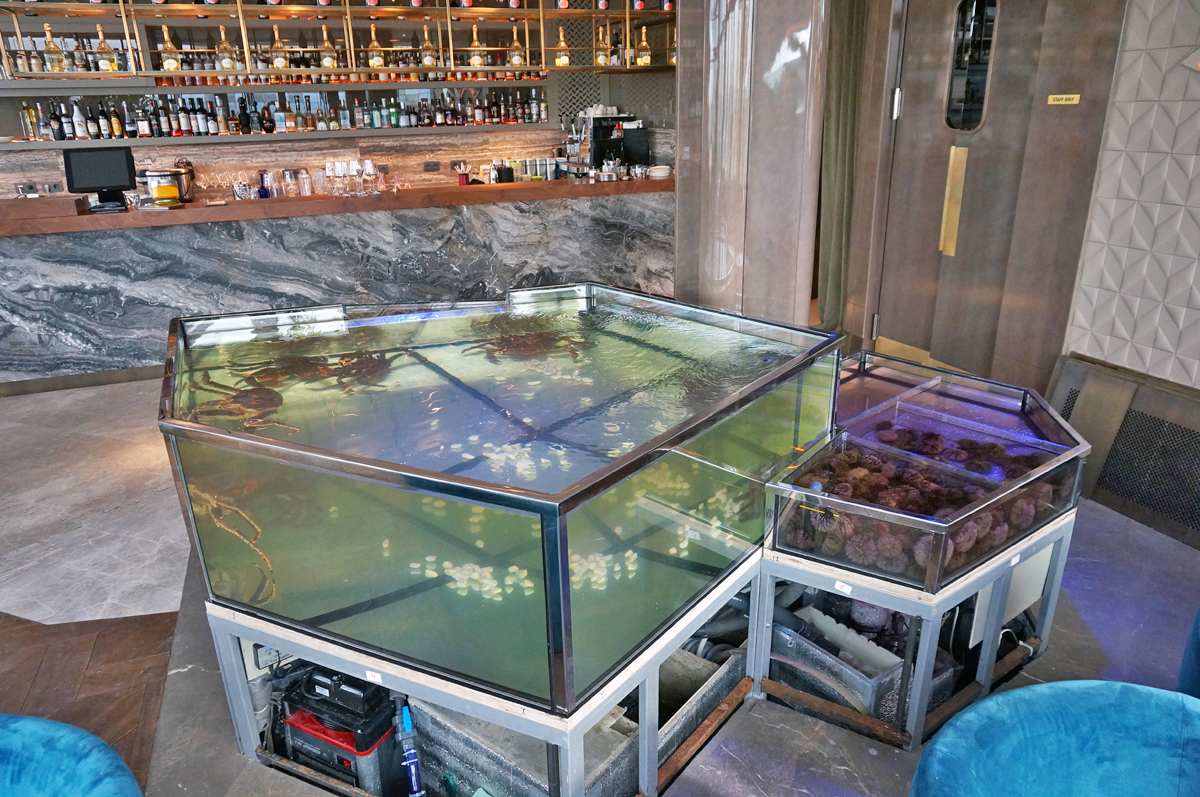 Здесь Вас ждет разнообразие морепродуктов: суши и роллы, тартары, севиче и крудо, морские ежи и ракушки, рыба запеченная, рыба на гриле, крабы и так далее. Для эффектных блюд отобраны лучшие рыбные деликатесы Сахалина, Японии и других уголков нашей планеты. Сочетание средиземноморских и азиатских блюд и техник приготовления легли в основу нового стиля MediterrAsian cuisine.