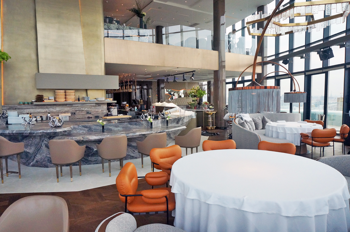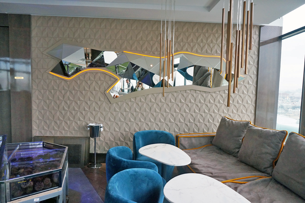 Зал ресторана «Сахалин» расположен на двух уровнях на 22 этаже.