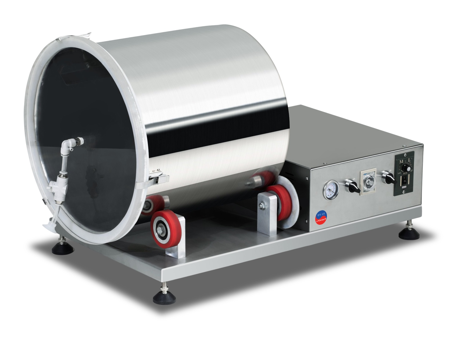 Основная часть аппарата — это горизонтальный барабан, который вращается на небольшой скорости, что позволяет маринаду проникнуть в волокна мяса, не нарушая его структуры. Кроме функции маринования, аппарат также обеспечивает мягкий массаж мяса, благодаря чему естественный сок и маринад равномерно распределяются и продукт становится нежнее и сочнее.