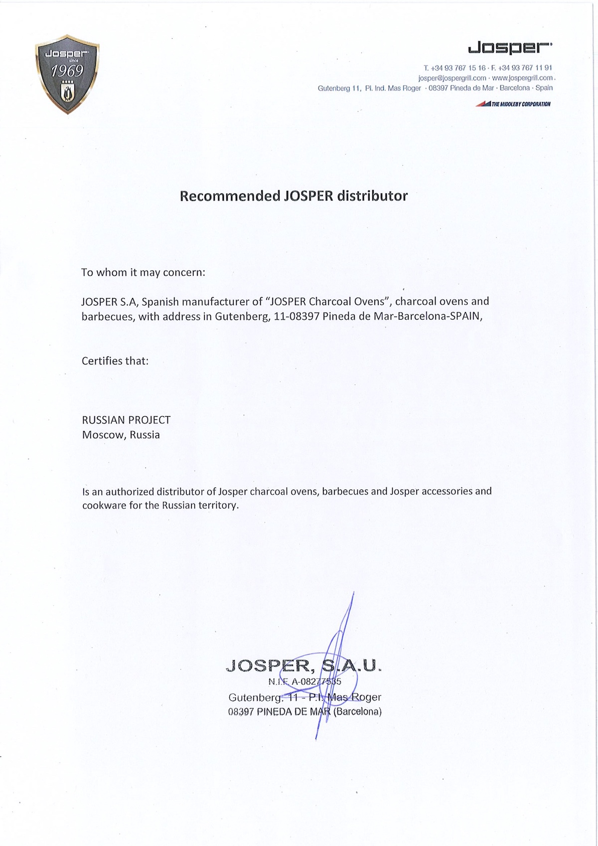Компания «Русский Проект»® авторизованный дистрибъютор печей JOSPER на территории Таможенного Союза.
