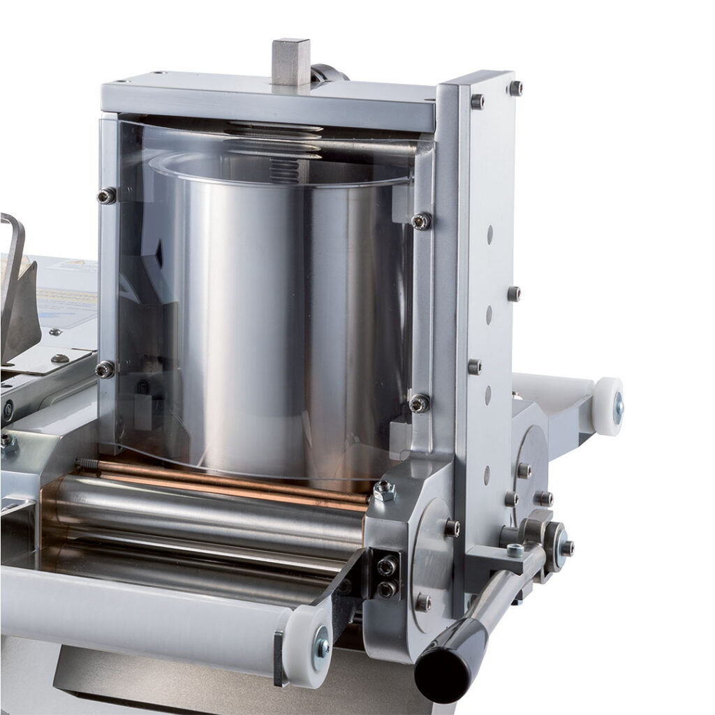 DOLLY является настольной машиной - экструдером, выполненной из анодированного алюминия и все поверхности соприкасающиеся с продуктами из нержавеющей стали; она снабжена аварийной кнопкой и индикатором включения.