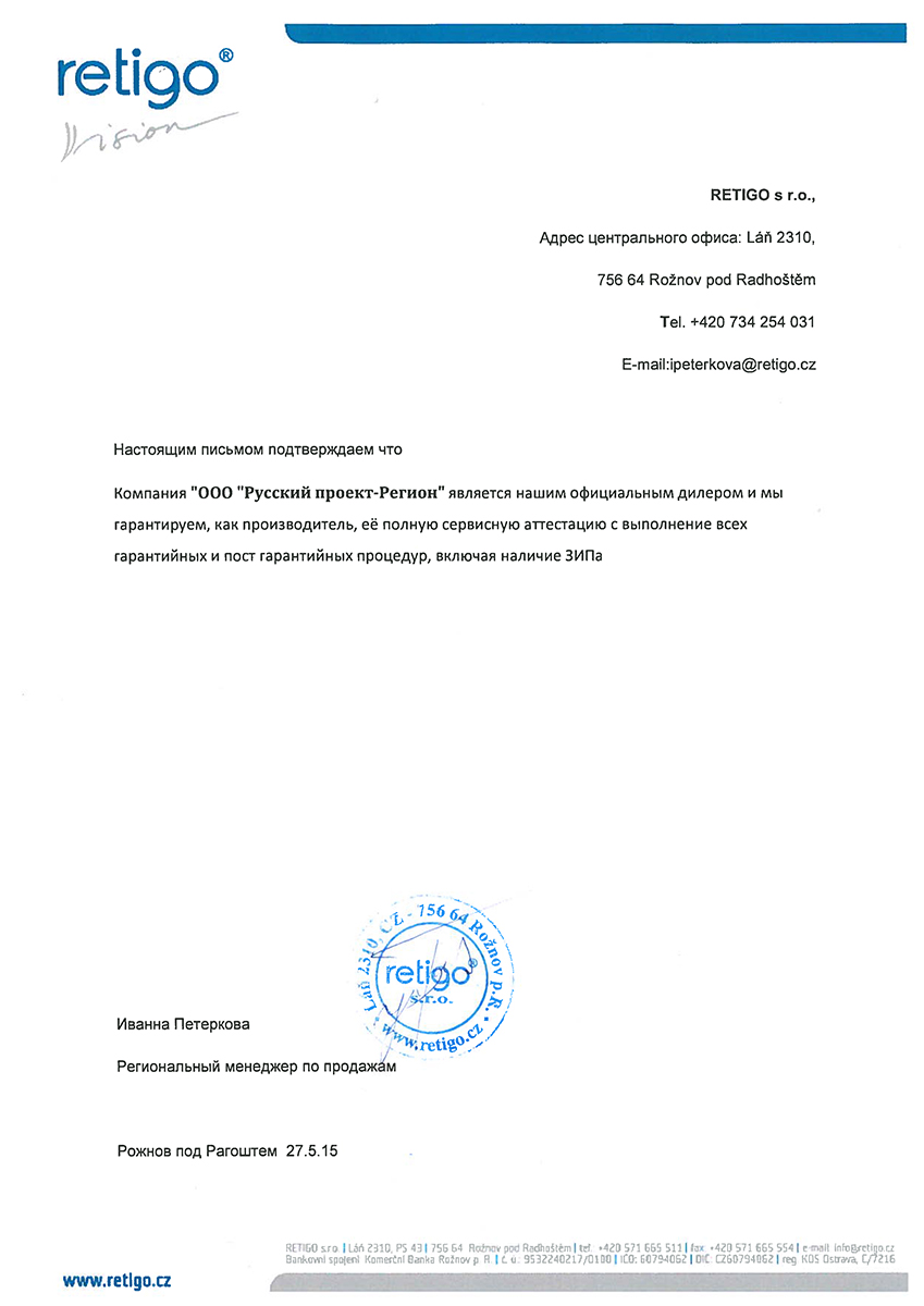 «Русский Проект» ® - официальный дилер Retigo на территории России и стран СНГ