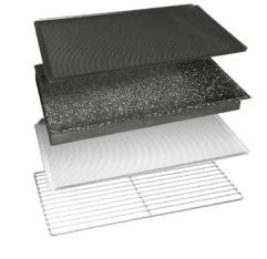 В ассортименте аксессуаров представлены классические гастроемкости различных гастронормированных размеров GN 1/1, GN 2/3 и GN 2/1 и пекарских листов 600*400 из нержавеющей стали цельные или перфорированные, специальные гастроемкости, нестандартные решетки и эмалированные противни.