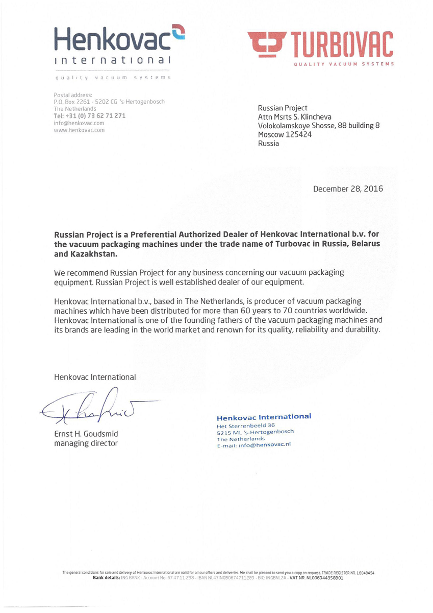 «Русский Проект» ® - Официальный дилер TURBOVAC на территории России и стран СНГ